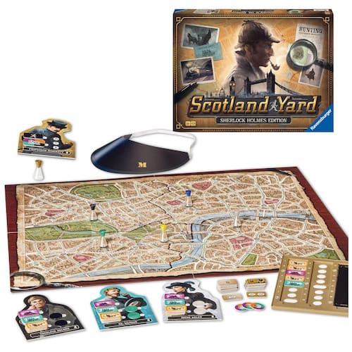 Entre nos sapatos do maior detetive do mundo com o Jogo de Estratégia Ravensburger Scotland Yard Edição Sherlock Holmes. Este jogo de tabuleiro de estratégia mergulha você em uma emocionante perseguição pelas ruas de Londres. O Professor Moriarty está à solta e cabe a você capturá-lo antes que ele ataque novamente. Use seu raciocínio dedutivo para rastreá-lo, mas cuidado, Moriarty é astuto. Este jogo promete mantê-lo na ponta da cadeira com sua jogabilidade envolvente. Adequado para maiores de 8 anos, é uma maneira fantástica de reunir família e amigos. Se você é fã de jogos de tabuleiro, mistérios ou do próprio Sherlock Holmes, este jogo com certeza vai cativar sua imaginação. Com instruções claras, você pode começar a jogar imediatamente. Projetado para 2 a 6 jogadores, é a escolha perfeita para noites de jogos em família, encontros ou festas. O jogo inclui componentes de alta qualidade, como tabuleiro de jogo, fichas de personagens, tabuleiros de jogadores, cartas de cena do crime e muito mais, oferecendo uma experiência de jogo imersiva. Junte-se à caçada e leve Moriarty à justiça neste emocionante jogo de quebra-cabeças.