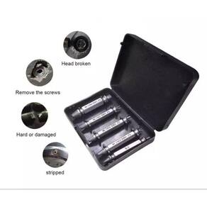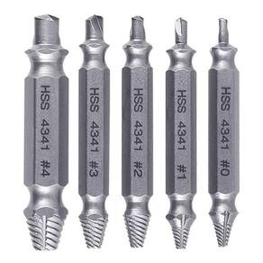 4. Tamanhos e tipos diferentes, este conjunto removedor de parafuso, em si vem com cinco brocas de tamanho diferentes. Dois lados podem ser usados. Assim pode ser usado em todos os tipos e tamanhos de parafuso.
