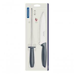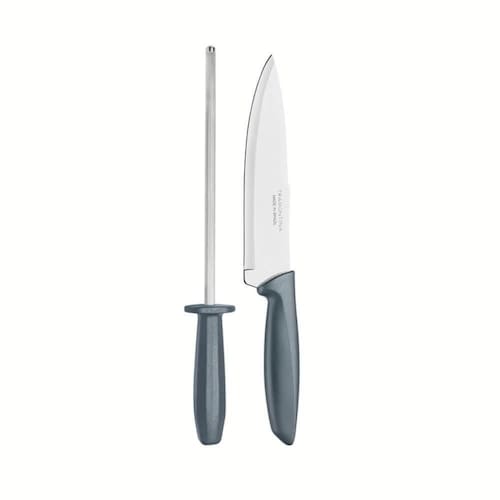 Qualidade e charme na sua cozinha com o jogo de faca com chaira Tramontina Plenus com lâminas em aço inox e cabos de polipropileno cinza 2 peças. Perfeitos para diferentes necessidades, podem ser do preparo dos alimentos ao serviços de mesa. Podem ainda ser levados à máquina de lavar louças. São as peças ideais para sua cozinha que atendem aos melhores momentos do seu dia junto com a família.