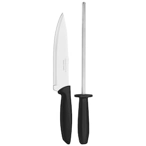 Jogo de Faca com Chaira Tramontina Plenus Lâminas em Aço Inox e Cabos de Polipropileno Preto 2 Peças Tramontina