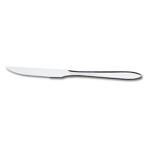 Jogo De Faca De Churrasco 12 Peças - Bellagio 214 X 3 Mm Para um toque especial à mesa, a linha de talheres Bellagio foi desenvolvida com design de traços suaves e delicados. A faca de churrasco possui serra mais afiada, para cortar carnes ou outros alimentos mais resistentes. A estrutura e o cabo em aço inox polido tornam a peça altamente durável e resistente, não correndo risco de oxidar e podendo inclusive ir à máquina de lavar louça. Outro diferencial é o revestimento temperado que não deixa arranhar o prato. O pacote com 12 unidades é ideal para completar ou repor os itens do faqueiro. Material - Aço Inox Linha - Bellagio Composição - 12 Facas de Churrasco Garantia - 90 dias para vícios ou defeitos de fabricação. Conteúdo Especial -