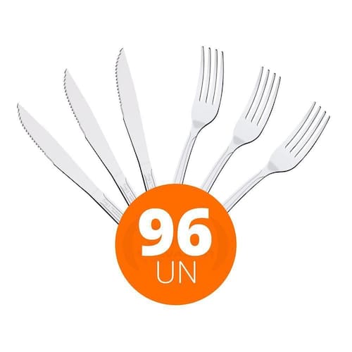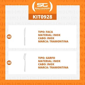 OBS: Veja na descrição os itens que acompanham o jogo.COMPONENTES DO KIT:48 Faca para Churrasco 4 Búzios em Aço Inox - Tramontina 2375040448 Garfo de Mesa em Aço Inox Búzios - Tramontina 23762400Faca para Churrasco 4 Búzios em Aço Inox - Tramontina 23750404Garantia: 90 dias para vícios ou defeitos de fabricação- Ideal para Restaurante, Lancheria, Padaria, Linha Doméstica, Residência, Gourmet;- Talher produzido em aço inox que mantém a beleza, a higiene e a durabilidade.- Lâmina da faca tem maior durabilidade do fio devido ao tratamento térmico.- Pode ir à máquina de lavar louças facilitando seu dia a dia.- Peso Líquido: 0,032 kg.- Peso Bruto: 0,035 kg.- Dimensões Produto : 3cmA x 19cmL x 20cm P.Garfo de Mesa em Aço Inox Búzios - Tramontina 23762400Garantia: 90 dias para vícios ou defeitos de fabricação- Ideal para Restaurante, Lancheria, Padaria, Linha Doméstica, Residência, Gourmet;- Certificação NSF - Os produtos da Linha Búzios são certificados pela National Sanitation Foundation NSF , organização reconhecida como a autoridade internacional em segurança alimentar e práticas de higiene.- Pode ir à máquina de lavar louças facilitando seu dia a dia.- Peso Líquido: 0,020 kg.- Peso Bruto: 0,020 kg.- Dimensões Produto: 1,8cm A x 2,2cm L x 18,77cm P.
