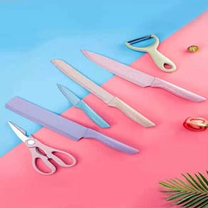Jogo De Faca Tesoura Cortador Cozinheiro Aprendiz Iniciante Kit de Facas e cortador de Cozinha. Sinta-se em sua cozinha um chef , cozinhando com uma das linhas mais caprichosas de facas. Facas de altíssima qualidade, rica em detalhes e texturas. Cada Peça proporcionando uma experiencia única e o que todos gostamos Características: - Lâminas Afiadas - Lâminas Inoxidável - Fácil de limpar e corta sem esforço carnes desossadas, frutas e todos os vegetais - Design bonito e elegante - Cada faca tem o equilíbrio distribuído de maneira bastante uniforme entre a lâmina e o cabo. - Pode melhorar a segurança e adicionar conforto e controle durante o uso. Especificações: Cor: Variadas Material: - Cabo: Plastico Polipropileno pp - Lâminas: Aço Inoxidável Dimensões Aproximadas: - Faca do Chefe Lâmina Comprimento: 20 cm Altura: 4 cm Cabo Comprimento: 12 cm Polegadas: 8 - Faca de Pão Lâmina Comprimento: 20 cm Altura: 4 cm Cabo Comprimento: 12 cm Polegadas: 8 - Cutelo Para Cozinha Lâmina Comprimento: 20 cm Altura: 4 cm Cabo Comprimento: 12 cm Polegadas: 8 - Faca de Legumes Lâmina Comprimento: 9 cm Altura: 2 cm Cabo Comprimento: 10 cm Polegadas: 3,5 - Tesoura Comprimento: 20 cm - Descascador Comprimento: 15 cm Marca: Não Informado Ean: 79090400383018