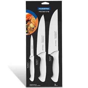 Para você preparar as refeições do dia a dia com praticidade você precisa contar com o Jogo de Facas Tramontina Premium com lâminas em aço inox e cabos de polipropileno branco 3 Peças.
