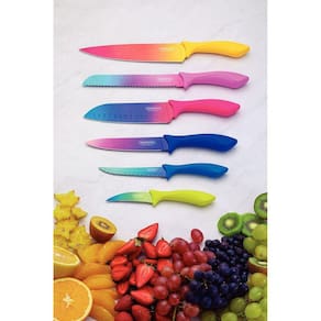 Jogo De Facas 6 Peças Colorcut Aço Inox - TramontinaPara quem ama uma cozinha cheia de estilo e colorida, o jogo de facas Tramontina Colorcut com lâminas em aço inox e cabos de polipropileno pintado 06 peças é a escolha perfeita.Desenvolvido para quem quer fazer bonito na cozinha e garantir alta praticidade e qualidade, ele tem suas facas produzidas com lâminas em aço inox com acabamento pintado que reduz o esforço durante o corte.Os cabos são produzidos em polipropileno, possuem proteção antimicrobiana que inibe o crescimento de fungos e bactérias e tem formato ergonômico, o que proporciona um manuseio muito mais confortável e seguro, pois se adaptam perfeitamente à mão.As peças ainda contam com pintura em cores vibrantes, que vão levar mais alegria e encanto para sua cozinhaCaracterísticas:Lâminas de aço inox com acabamento pintado tornando sua cozinha mais alegre.As lâminas têm maior durabilidade do fio devido ao tratamento térmico.As lâminas possuem maior capacidade de deslizamento reduzindo o esforço durante o corte.Os cabos de polipropileno possuem maior resistência, durabilidade e ergonomia.Os cabos possuem proteção antimicrobiana que inibe o crescimento de fungos e bactérias, proporcionando benefícios em higiene e redução de microrganismos que causam contaminação.Peso: 0,55 kgCódigo - 23099/832