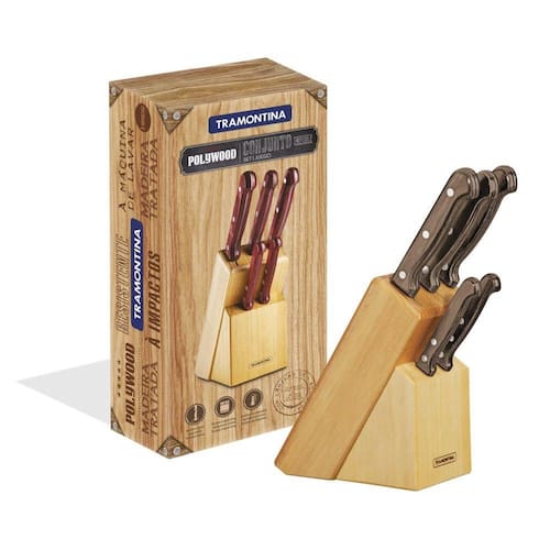 As refeições informais não dispensam a qualidade dos talheres, utensílios e facas. Por isso, a Linha Polywood têm lâminas de aço inox em formato e espessura que garantem a resistência e evitam deformações. O tratamento térmico dá mais durabilidade ao fio e o cabo de madeira tratada polywood, é confortável à pega. Com cinco anos de garantia, permanecem bonitos mesmo com uso intenso e submetidos a impactos e altas temperaturas. Podem ir à máquina de lavar louças.