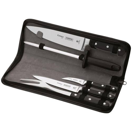 Os melhores momentos na cozinha em casa, surgem quando oferecemos o melhor para as pessoas que a gente gosta. Para isso, é essencial contarmos com itens de qualidade. Você vai ter muita praticidade a partir de agora com o Jogo de Facas Tramontina Century com Lâminas em Aço Inox e Cabos de Policarbonato e Fibra de Vidro com Estojo 6 Peças, da linha Century. O jogo vem em um belíssimo estojo sintético e conta com facas com lâminas de aço inox forjadas de altíssima qualidade que, aliada ao eficiente com tratamento térmico diferenciado, composto por têmpera, sub-zero e revenimento, além de dureza de 55 e 58 HR e cabos de policarbonato com fibra de vidro, garfo trinchante com lâmina de aço inox e cabo de polipropileno e chaira com haste de aço carbono cromado e cabo de polipropileno. Ou seja, tudo que você pode precisar para realizar as melhores receitas e conseguir um sabor inesquecível para os momentos especiais em casa.