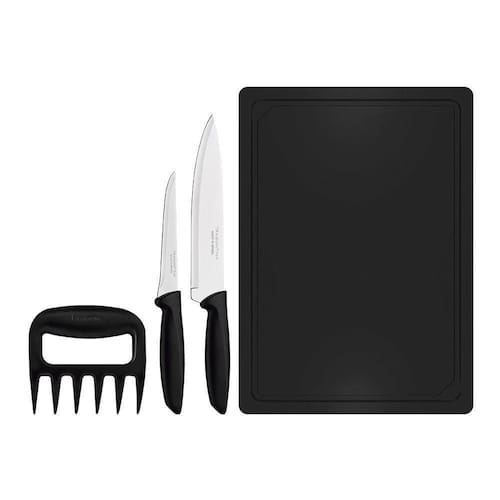 Acompanha o produto: - 1 Faca para Desossar 51 Faca para Carne 81 Tábua de Corte1 Garra Multiuso Garantia: - 90 dias junto ao fabricante