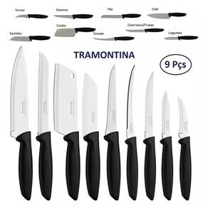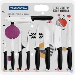 Com o jogo de facas tramontina plenus com lâminas em aço inox e cabos de polipropileno preto 9 peças, você terá a solução completa de facas para utilizar nos mais diversos tipos de cortes e ocasiões gastronômicas. As peças combinam com qualquer cozinha e a deixam mais bonita e clássica, pois seus cabos são na elegante cor preta. As lâminas produzidas em aço inox por terem sido submetidas a tratamento térmico, oferecem maior durabilidade e resistência. As facas são fáceis de limpar e podem ser lavadas na máquina de lavar louças. Com peças únicas e de muita importância na cozinha, o jogo de facas é a escolha perfeita para você. Facas de qualidade e beleza você encontra com a tramontina