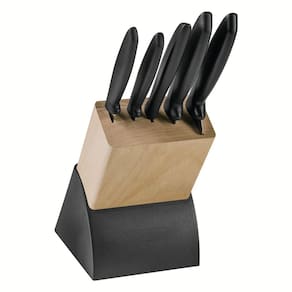 Jogo de Facas Tramontina Plenus com Lâminas em Aço Inox Cabos de Polipropileno Preto e Suporte de Madeira 6 Peças
