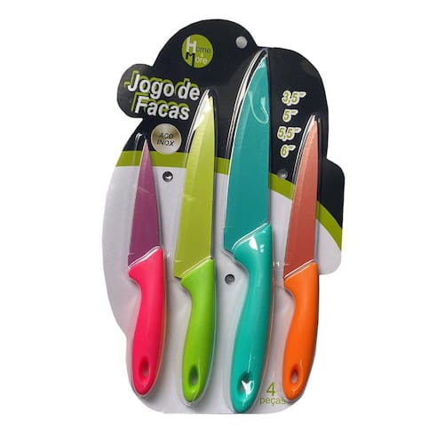 Jogo De Facas Colorida de Inox Cozinha Hm-94 Kit 4 Peças para Legumes, Frutas e Carne .