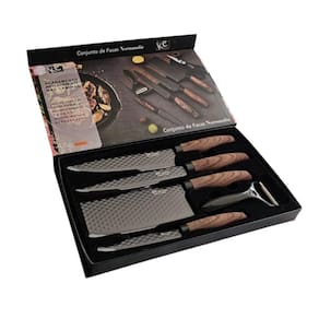 CARACTERISTICAS - Facas afiadas para uso diário - Lâmina com relevo e com revestimento antiaderente - Produto entregue em uma linda caixa, ideal para presentear