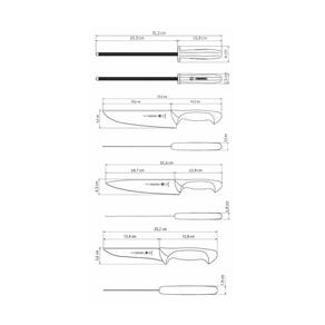 As lâminas de aço inox das facas têm maior durabilidade do fio devido ao tratamento térmico. Chaira possui haste de aço carbono revestida com cromo-duro que garante uma maior durabilidade e precisão para a afiação. Os cabos de polipropileno possuem maior resistência e durabilidade. Podem ir à máquina de lavar louças facilitando seu dia a dia.