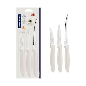 Versatilidade e charme é o que você vai encontrar no Jogo de Facas Tramontina Plenus com Lâminas em Aço Inox e Cabos de Polipropileno Off White 3 Peças da Linha Plenus. Ideais para cortar, descascar e tornear legumes, verduras e frutas. As três peças são produzidas com cabos em polipropileno na cor Off White e lâminas em aço inox, que atestam qualidade e conforto no manuseio. Fáceis de limpar, podem ser usadas na máquina de lavar louças. São a escolha ideal para o café da manhã, jantar e os encontros com seus amigos.