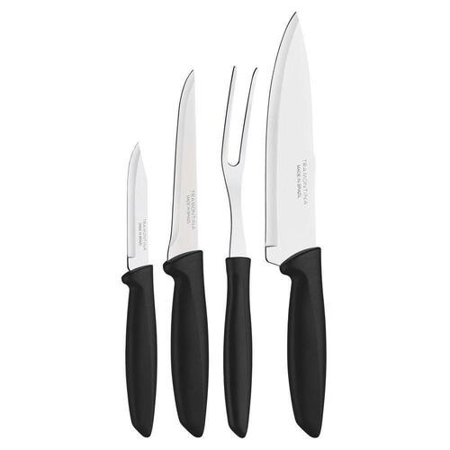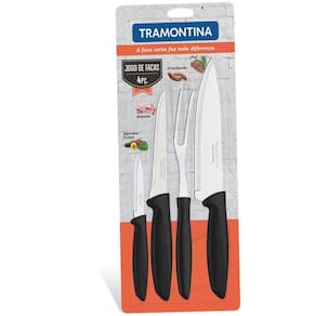 O Jogo de Facas Tramontina Plenus com Lâminas em Aço Inox e Cabos de Polipropileno Preto 4 Peças da Linha Plenus é perfeito para diferentes cortes na cozinha. As quatro peças atendem diferentes usos: desde o preparo dos alimentos ao serviço de mesa. Produzidas com cabos de polipropileno e lâminas em aço inox, são resistentes e fáceis de manusear, podendo ser utilizadas na lava louças. O design moderno permite que elas estejam em preparações que vão desde o café da manhã ao jantar. A escolha certa para suas necessidades na cozinha.