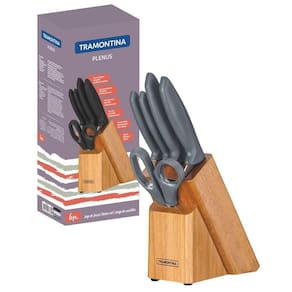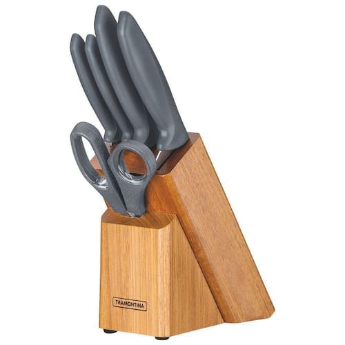 O Jogo de Facas Tramontina Plenus com Lâminas em Aço Inox Cabos de Polipropileno ;Cinza e Suporte de Madeira 6 Peças da Linha Plenus vai deixar a aparência da sua cozinha mais prática e moderna. São cinco facas produzidas com cabo em polipropileno Cinza , resistentes e de fácil manuseio. As lâminas são de aço inox e acompanha um suporte de madeira, perfeito para manter sempre a organização das peças. Fáceis de limpar podem ser levados à máquina de lavar louças. São as facas essenciais que atendem diferentes usos na cozinha.