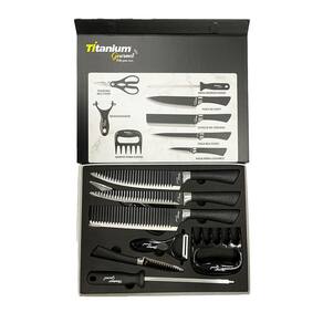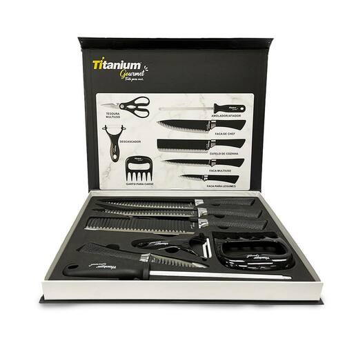 jogo de facas premium inox preta profissional titanium gourmet 8 peças
