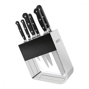 As lâminas forjadas de aço inox especial garantem um fio com maior durabilidade e precisão. As lâminas possuem tratamento térmico diferenciado, composto por têmpera, sub-zero e revenimento. E contam com dureza da lâmina de 55 e 58 HRC, que garante maior resistência do fio e precisão no corte. Os cabos de policarbonatos reforçado com fibra de vidro garante alta durabilidade, equilíbrio e segurança. Os cabos ergonômicos proporcionam maior segurança, equilíbrio e conforto na hora do corte. Suporte de acrílico com aço inox que oferece uma proteção as peças. Podem ir à máquina de lavar louças facilitando seu dia a dia. Cor: Única | Peso Produto Com Embalagem (Kg): 2.5700000000000003 | Nome do Simples no Fornecedor: Jogo de Facas Tramontina Century com Laminas em Aço Inox e Cabos de Policarbonato e Fibra de Vidro com Suporte 7 Peças | Largura Produto Com Embalagem (cm): 22.5 | Produto precisa de Montagem?: Não | Comprimento do Produto (cm): 10 | Descrição do Tamanho: 22 x 36 x 3 cm | Estado de Origem: GO | Garantia em Meses: 3 | Comprimento Produto Com Embalagem (cm): 15 | Altura do Produto com Embalagem (cm): 41 | Material para Filtro: Inox | Instruções/Cuidados: Limpar com pano seco. | Conteúdo da Embalagem: 1 Produto - 1 Volume | Largura do Produto (cm): 22 | Peso do Produto (Kg): 2.37 | Altura do Produto (cm): 36 | CORES: Prateado | ColorFamily: Prateado | ColorSimple: Prateado | MaterialFamily: Inox
