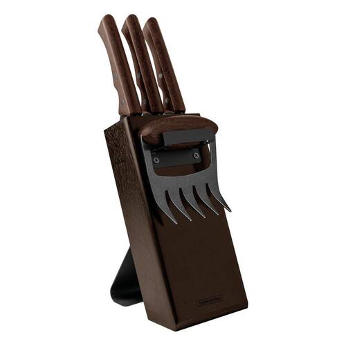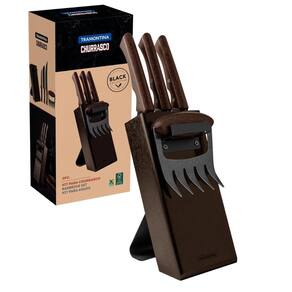 Jogo de facas para churrasco black collection tramontina com suporte de madeira