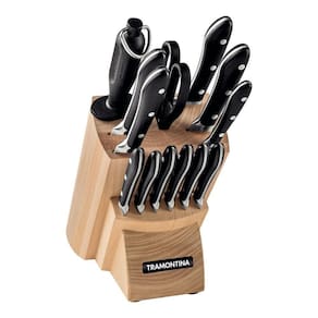 Jogo De Facas Tramontina Em Aço Inox Cabo Em Policarbonato Com Suporte/cepo Em Madeira 14 Peças