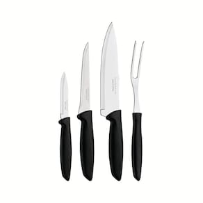 O jogo de facas Tramontina Plenus com lâminas em aço inox e cabos de polipropileno preto 4 peças é perfeito para diferentes cortes na cozinha. As quatro peças atendem diferentes usos: desde o preparo dos alimentos ao de mesa. Produzidas com cabos de polipropileno e lâminas em aço inox, são resistentes e fáceis de manusear, podendo ser utilizadas na lava louças. O design moderno permite que elas estejam em preparações que vão desde o café da manhã ao jantar. A escolha certa para suas necessidades na cozinha.