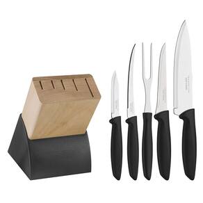 Unidades por kit: 6.Lâmina de aço inoxidável.Punho de polipropileno.Lâmina de aço inox com maior durabilidade do fio devido ao tratamento térmicoSuporte para facas de madeira e polipropilenoConjunto com 5 facas e 1 suporte em madeira