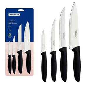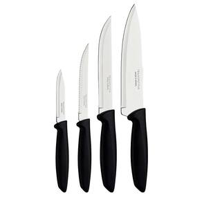 Jogo De Facas Tramontina Plenus C/Lâminas Aço Inox 4 Peças O jogo de facas Tramontina Plenus com lâminas em aço inox e cabos de polipropileno preto 04 peças será seu ajudante perfeito na hora de preparar suas refeições, sejam elas com carnes, legumes ou frutas. Perfeito para uso diário, ele é composto por facas desenvolvidas com lâminas em aço inox com tratamento térmico e devido a isso, garantem um excelente fio de corte. Os cabos são em polipropileno na cor preta, são resistentes e duráveis, podendo ainda, ir à máquina de lavar louças. Escolha Tramontina e deixe seu dia a dia na cozinha muito mais prático Faca para Churrasco/ Frutas 5 Plenus Faca para Legumes e Frutas 3 Plenus Faca para Cozinha 6 Plenus Faca Chef 7 Plenus Lâminas de aço inox com maior durabilidade do fio devido ao tratamento térmico. Cabos de polipropileno com maior resistência e durabilidade. Podem ir à máquina de lavar louças facilitando seu dia a dia. Marca: Não Informado