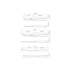 Composição: 1 Faca Chef 7" Plenus 1 Faca para Churrasco e Frutas 5" Plenus 1 Faca para Cozinha 6" Plenus 1 Faca para Legumes e Frutas 3" Plenus 1 Faca para Pão 7" Plenus 1 Garfo Trinchante Plenus
