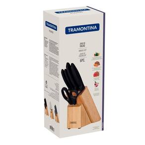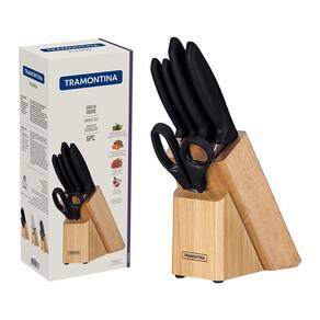 Você vai transformar os encontros na sua casa em uma verdadeira experiência com o Jogo de Facas Tramontina Plenus com Lâminas em Aço Inox Cabos de Polipropileno Preto e Suporte de Madeira 6 Peças da Linha Plenus. Muito versáteis e modernos, as facas podem ser usados em diferentes momentos, desde o preparo dos alimentos ao serviço de mesa. As seis peças possuem cabos na cor preta de polipropileno e lâminas em aço inox, que são resistentes e confortáveis no manuseio.O elegante suporte de madeira embeleza sua cozinha e ainda organiza as peças. Podem ser utilizadas na máquina de lavar louças. São as escolhas perfeitas para tornar seus momentos ainda mais incríveis!