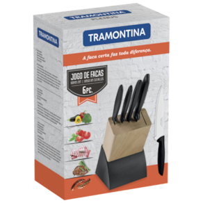Jogo de Facas Tramontina Plenus com Lâminas em Aço Inox e Suporte de Madeira 6 Peças Tramontina - Na sua casa
