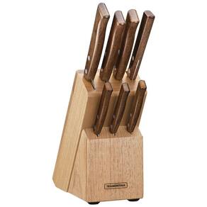 Jogo de Facas Tramontina Tradicional com Lâminas em Aço Inox e Cabos em Madeira Natural com Suporte 8 Peças Com o Jogo de Facas Tramontina Tradicional com Lâminas em Aço Inox e Cabos em Madeira Natural com Suporte 8 Peças, você poderá recepcionar as pessoas que ama fazendo preparações incriveís. Além disso, garante que esteja sendo utilizado peças de qualidade e que oferecem muita praticidade durante o preparo. Produzidos com lâminas em aço inox, o jogo oferece leveza no manuseio. Além disso, proporciona um charme extra devido aos cabos em madeira natural combinarem tanto com ambientes externos quanto internos. Qualidade e beleza é com os produtos Tramontina! Informações Gerais Lâminas de aço inox. As lâminas das facas têm maior durabilidade do fio devido ao tratamento térmico. A lâmina do garfo conta com maior espessura e uma estampagem do aço que garante maior resistência, evitando deformações. Os cabos são de madeira natural. Rebites de alumínio. Suporte de madeira que oferece uma proteção as peças.