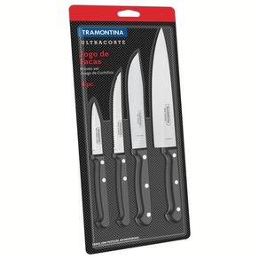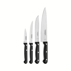 Existem facas que são essenciais para o sucesso das nossas receitas. Com o jogo de facas Tramontina Ultracorte com lâminas em aço inox e cabos de polipropileno preto 4 peças você vai encontrar talheres que se adaptam às diferentes funções na cozinha. As 4 peças possuem cabos em polipropileno na cor preta, confortável no manuseio e com proteção antimicrobiana, inibindo a ação de bactérias e fungos. As lâminas em aço inox são resistentes e possuem tratamento térmico, que dão maior durabilidade ao fio. Para facilitar ainda mais o dia-a-dia, as peças podem ser levadas à máquina de lavar louças.