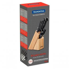 O Jogo de Facas Tramontina Ultracorte com Lâminas em Aço Inox Cabos de Polipropileno Preto e Suporte de Madeira 6 Peças da Linha Ultracorte vai deixar sua cozinha mais sofisticada e com qualidade. Com um charmoso suporte de madeira, ele organiza as 5 peças deixando sua cozinha mais elegante. As lâminas de aço inox possuem tratamento térmico, que dão maior durabilidade ao fio. Os cabos em polipropileno na cor preta, possuem proteção antimicrobiana, que inibem o crescimento de bactérias e fungos. Fáceis de guardar e limpar, podem ser utilizadas na máquina de lavar louças.