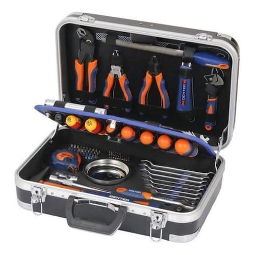 O Jogo de Ferramentas 111 Peças Dexter é um excelente Kit para você ter em sua casa e no local de trabalho. Ideal para instalações, aperto e desaperto de parafusos, montagens de peças, móveis e etc, ele acompanha todas as ferramentas necessárias ao dia a dia do usuário Nada melhor do que ter um jogo de ferramentas em casa e estar sempre preparado para qualquer tipo de serviço manual Com o Jogo de Ferramentas 111 peças Dexter, você realiza reparos, ajustes e montagens de peças e móveis com máxima praticidade e segurança Ideal para você ter em sua casa ou no trabalho e não correr o risco de sofrer com algum imprevisto. O kit contém todas as ferramentas necessárias para o dia a dia O Jogo de Ferramentas 111 peças Dexter é um item obrigatório para todo bricoleiro pois, sua compacta maleta permite encontrar, em um único lugar, ferramentas selecionadas a dedo necessárias para a suas atividades diárias. Seu design com inúmeros compartimentos garante praticidade e economia de tempo na procura da ferramenta certa para o seu uso. Características do Jogo de Ferramentas 111 peças Dexter O jogo de ferramentas da marca Dexter é feito em aço cromo-vanádio e algumas ferramentas possuem cabo de plástico nas cores azul e laranja. O kit contém 111 peças em diversos modelos e acompanha uma resistente maleta de metal com divisórias e fecho também em metal. A maleta mede 12,3cm de altura, 29,7cm de largura e 42,4cm de profundidade. Ela pesa 6,96kg. O Jogo acompanha os seguintes itens: 1 Alicate Bomba Dágua 200mm; 1 Alicate Universal 160mm; 1 Alicate de Corte Diagonal 160mm; 1 Chave Inglesa 150mm; 1 Estilete 18mm; 1 Caixa de lâminas com 5 peças; 1 Lima Meia Cana 300mm ; 1 Martelo Pena de cabeça 25mm; 1 Arco de Serra 6 150mm ; 1 Conjunto de Abraçadeiras de Nylon 3,5x150mm; 1 Nível de Mão 300mm; 1 Lanterna de Alumínio; 1 Trena Manual 19mmx5m; 1 Vasilha Magnético 110mm; 1 Almofada; 1 Chave de Fenda Isolada SL2.5x75mm; 1 Chave de Phillips Isolada PH1X80mm; 1 Chave de Fenda de Precisão; 2 Chaves de Fenda SL3.5x75mm e SL6.5x100mm; 2 Chaves Phillips PH1x75mm e PH2x100mm; 7 Chaves Allen hexagonais 1,5-2-2,5-3-4-5-6mm; 7 Chaves Combinadas; 1 Chave Catraca 3/8 72 Dentes; 1 Chave Suporte; 1 Cabo Extensor Magnético; 20 Pontas Bits de Precisão; 30 Pontas Bits 25mm; 16 Soquetes 3/8 6-19,21,22mm; 1 Extensão de Soquetes 3/8 150mm; 1 Junta Universal 3/8; 1 Par de adaptadores de soquete 3/8-1/4. Vantagens do Jogo de Ferramentas 111 peças Dexter O kit de ferramentas possui uma linda e sofisticada maleta que proporciona melhor organização das ferramentas e mais facilidade para escolher e guardar as peças. Ferramentas em aço cromo-vanádio possuem ótima resistência e durabilidade Com excelente acabamento e cabo ergonômico para facilitar na utilização. Um conjunto completo, com as melhores ferramentas para realizar qualquer serviço manual com eficiência e comodidade Acompanha Maleta Sim