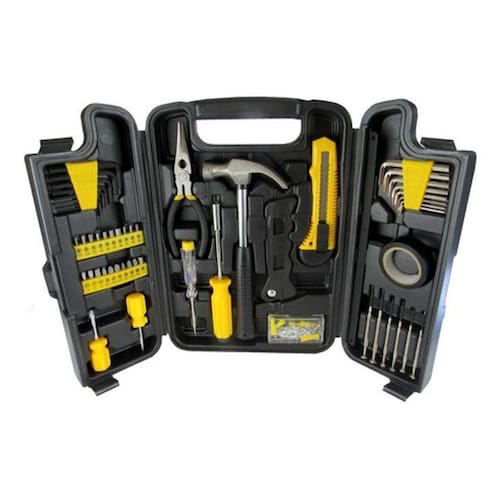 É feita de plástico, um material muito resistente a quedas e impactos. Entre as 200 peças presentes na maleta, estão chaves de precisão, chaves allen, chave teste, fita isolante, arco de serra, estiletes, martelo, alicate, bits e fixadores. Tais materiais servem para diversos tipos de manutenções residenciais e comerciais.