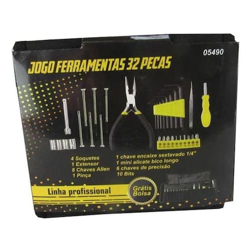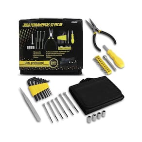 Jogo de ferramentas com 32 peças é ideal para diversas aplicações diárias, além de ser ótimo para trabalhos profissionais ou hobby, seja na oficina, ou na própria residência. Composto por ferramentas robustas e com muita qualidade, sendo fabricadas em aço especial, garantindo maior vida útil e resistência. Junto vem estojo em lona, trazendo maior proteção às ferramentas e maior organização.
