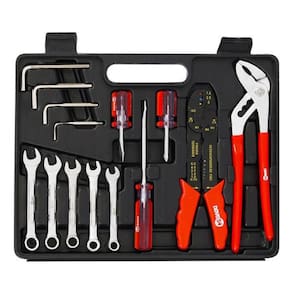 Jogo De Ferramentas Com 100 Peças E Maleta Nove54 - Kf 100 Indicado para manutenções e reparos em geral. Acompanha maleta plástica para perfeito acondicionamento das ferramentas e facilitar o transporte. 1 Jogo de ferramentas, composto por maleta plástica com 100 peças em aço carbono, sendo: 2 chaves de fenda 6 mm x 40 mm e 6 mm x 100 mm , 1 chave phillips 6 mm x 40 mm, 4 chaves allen 3 mm, 4 mm, 5 mm e 6 mm , 5 chaves combinadas 8 mm, 9 mm, 10 mm, 11 mm e 12 mm , 1 alicate multiuso, 1 alicate bomba d'água, 1 martelo pena 300 g, 1 miniarco de serra, 4 soquetes sextavados encaixe 3/8 14 mm, 15 mm, 16 mm e 17 mm , 13 soquetes sextavados encaixe 1/4 4 mm - 4,5 mm - 5 mm - 5,5 mm, 6 mm - 6,5 mm - 7 mm - 8 mm - 9 mm - 10 mm - 11 mm - 12 mm e 13 mm , 1 catraca, 1 chave T, 1 soquete adaptador, 11 ponteiras, 53 terminais elétricos diversos Quantidade de peças do jogo de ferramentas:100 peças CDC : legal: 90 dias