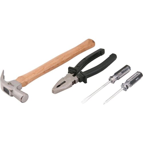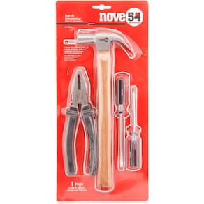 Conteúdo da embalagem 1 Jogo de ferramentas com 4 peças, sendo: 1 chave de fenda aço carbono 3/16" x 4", 1 chave de fenda cruzada/phillips aço carbono 3/16" x 4", 1 martelo unha 21 mm cabo de madeira e 1 alicate universal aço carbono 8" Aplicações e dicas de uso Indicado para manutenções e reparos em geral. Uso leve.