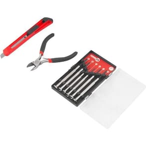Ref. Fornecedor:3599000047conteúdo Embalagem:1 Jogo de ferramentas com 8 peças, sendo: 1 alicate corte diagonal em aço carbono de 4.1/2, 1 estilete de 9 mm , 6 chaves de precisão em aço carbono 2 phillips PH1 e PH0 e 4 fenda 1,4 mm, 2 mm, 2,4 mm e 3 mm Aplicações e dicas de uso:Indicado para relojoarias, eletrônicas, serviços de precisão, entre outros. Uso leve.Características Técnicas:Quantidade de peças do jogo de ferramentas: 8 peças Marca: Não Informado