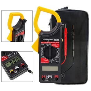 01 - Alicate Amperímetro com Multímetro portátil com visor de LCD DT - 266 Possui Estojo de Transporte, Pontas de Prova e Bateria