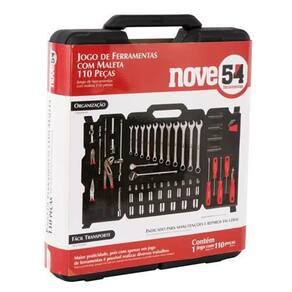 Jogo de ferramenta composto por 110 peças fabricadas com material resistente que proporciona durabilidade e eficiência. Maleta completa com soquetes, chaves de catraca, chaves combinadas, vários bits dentre muitos outras peças, ideal para quem precisa de variedade e versatilidade.