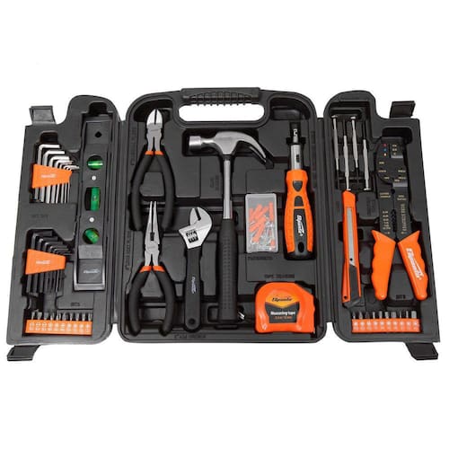 Contém: alicates para corte e manuseio de fios, descascador e prensador de cabos elétricos, mini chaves de fenda para aparelhos eletrônicos em geral, chave inglesa que lhe proporciona ampla gama de medidas, chave intercambiável com dezenas de pontas das mais variadas formas, além de trena para suas medições e estilete para pequenos cortes em geral. Além disso vem com martelo e diversos parafusos, tudo acondicionado em uma prática maleta.