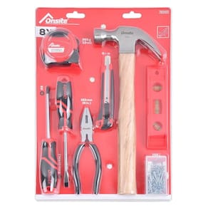 Jogo de Ferramentas Pequenos Reparos 8 Peças Jogo com 8 peças com ferramentas variadas, para execução de pequenos reparos.Composição:01x Trena 3.5m x 16 mm01X Chave Phillips PH2 x 100 mm 01x Chave de fenda 6 x 100 mm01x Alicate universal 150 mm 6'' 01x Estilete 9 mm01x Martelo 365g01x Nível torpedo 160 mm01x Kit com pregos, parafusos e buchas Código: 780105Marca: OnsiteQuantidade: 7 itens inclusosEan:6942629239314