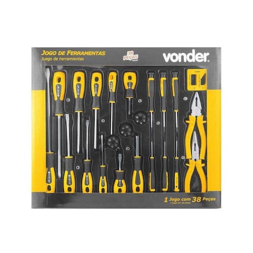 Jogo de ferramenta jogo de ferramenta 3072038000 jogo multiferramentas com 38 pecas Indicado para manutenções e reparos em geral. Proporciona maior praticidade, pois com apenas um jogo de ferramentas é possível realizar uma série de trabalhos. Conjunto versátil de ferramentas para usar no dia a dia em diversas situações.