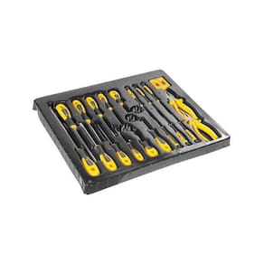 Jogo de ferramentas, composto por: 5 x chaves de fenda em aço cromo vanádio: 1/8 x 3, 3/16 x 4, 1/4 x 1.1/2, 1 /4 x 4 e 5/16 x 8 5 x chaves phillips em aço cromo vanádio: 1/8 x 3, 3/16 x 4, 1/4 x 1.1/2, 1/4 x 4 e 5/16 x 6 4 x bits fenda em aço cromo vanádio encaixe 1/4: 3mm, 4mm, 5mm e 6mm 4 x bits phillips em aço cromo vanádio encaixe 1/4: ph0, ph1, ph2 e ph3 4 x bits pozidrive em aço cromo vanádio encaixe 1/4: pz0, pz1, pz2 e pz3 6 x bits hexalobular em aço cromo vanádio encaixe 1/4: t10, t15, t20, t25, t27 e t30 3 x chaves de fenda: 2mm, 2,4mm e 3mm 3 x chaves phillips: 2mm, 2,4mm e 3mm 1 x desmagnetizador / magnetizador 1 x cabo adaptador de bits encaixe sextavado 1/4 1 x alicate de bico meia cana reto com isolação 1.000v 1 x alicate universal 6pol. Com isolação 1.000v Ean: 7893946543815