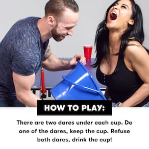 - COMO JOGAR: Prepare um jogo de drink pong. Coloque um cartão de desafio embaixo de cada copo. Quando uma bola cai em um copo, você pode fazer um dos desafios e ficar com o copo, ou recusar os dois desafios e beber. (Não é necessário consumir álcool para jogar este jogo.) COMO JOGAR: Configure um jogo de drink pong. Coloque um cartão de desafio embaixo de cada copo. Quando uma bola cai em um copo, você pode fazer um dos desafios e ficar com o copo, ou recusar os dois desafios e beber. (Não é necessário o consumo de álcool para jogar este jogo.)
