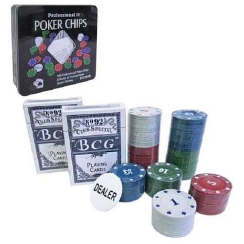 JOGO DE FICHAS PARA POKER 100 FICHAS PLASTICO NA LATA - IM42054