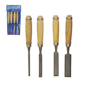 Conjunto de cinzel de madeira 4 peças, haste feita em aço carbono e cabo revestido de madeira. Especificações: Fabricante: Western Tamanho aproximado dos formões: 23CM 1'' ½'' ¼'' 3/4'' Peso aproximado: 295gr Cor: Bege e Cinza Composição: Aço carbono e Madeira Marca: Não Informado
