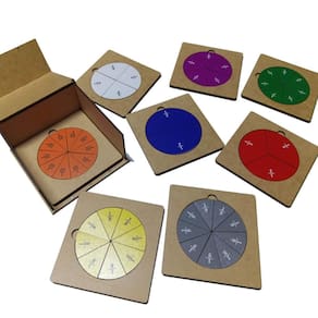 Conteúdo: 1 caixa organizadora, 54 discos de frações;
