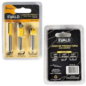 Jogo de Fresas Tupia para Madeira Haste 6 MM Kit 3 Peças EVJF-03 EVALD